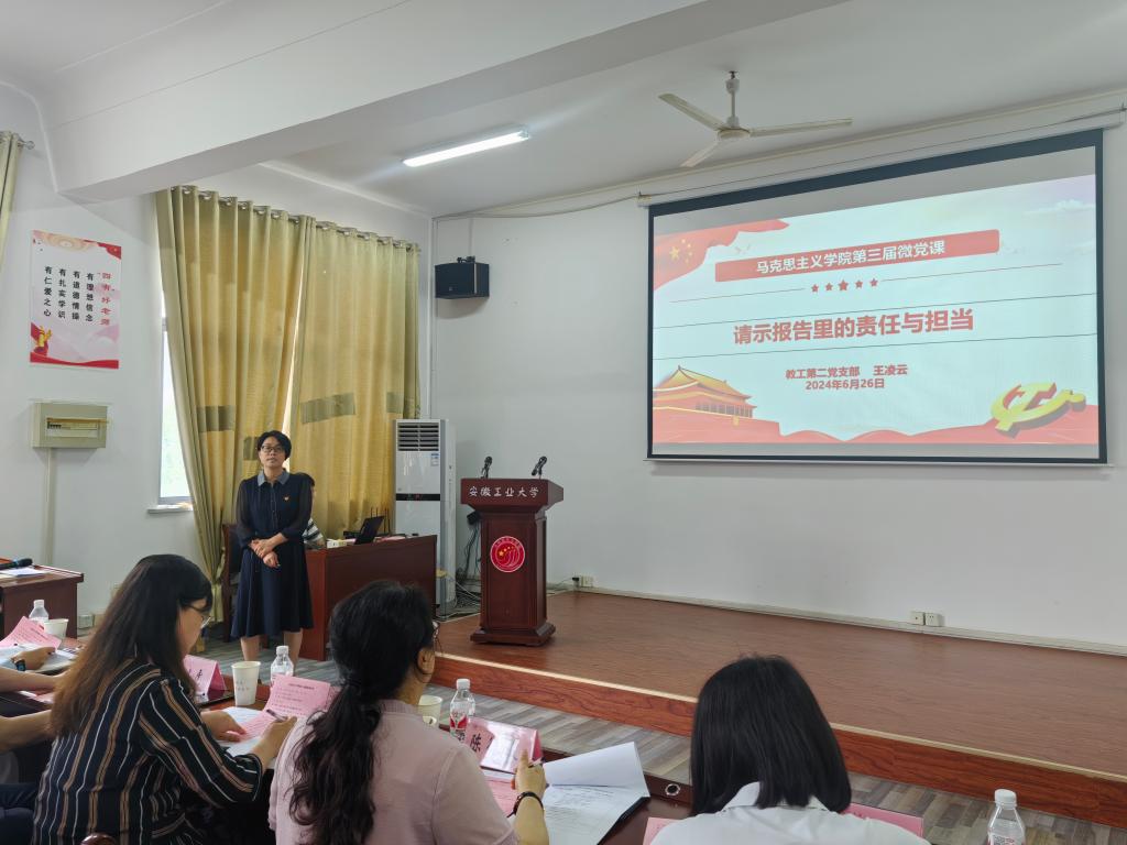 党委秉承“党建+思政”的理念,创新性地开展党建活动,充分利用“微党课”这一党员教育的有效载体,持续推进党的创新理论入脑入心,不断提升思政课教师讲深讲透讲活思政课的能力水平。(撰稿:斯小燕 审核:唐志强 徐惠)