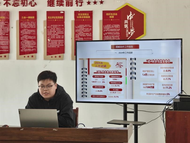 黄泽润围绕过去一年中国式现代化的成果、今年发展的预期目标和政策取向三个方面对2025年政府工作报告作出了阐释,深入浅出地讲解了国家政策方向和民生热点,引导大家深刻领会报告中蕴含的政策导向和发展思路,让大家对两会精神有了更全面、更深入的理解。