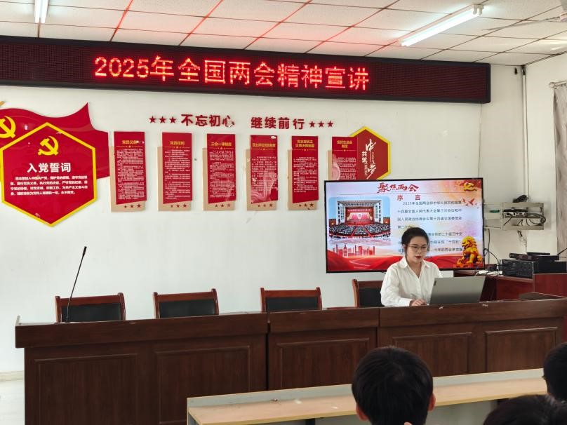 宣讲团成员王雨晴和黄泽润以《聚焦两会 关注民生——深入学习贯彻2025年全国两会政府工作报告精神》为题共同进行了宣讲,他们围绕习近平总书记在全国两会期间的重要讲话精神和2025年政府工作报告两个方面生动解读了全国两会精神的核心内容和生动内涵。