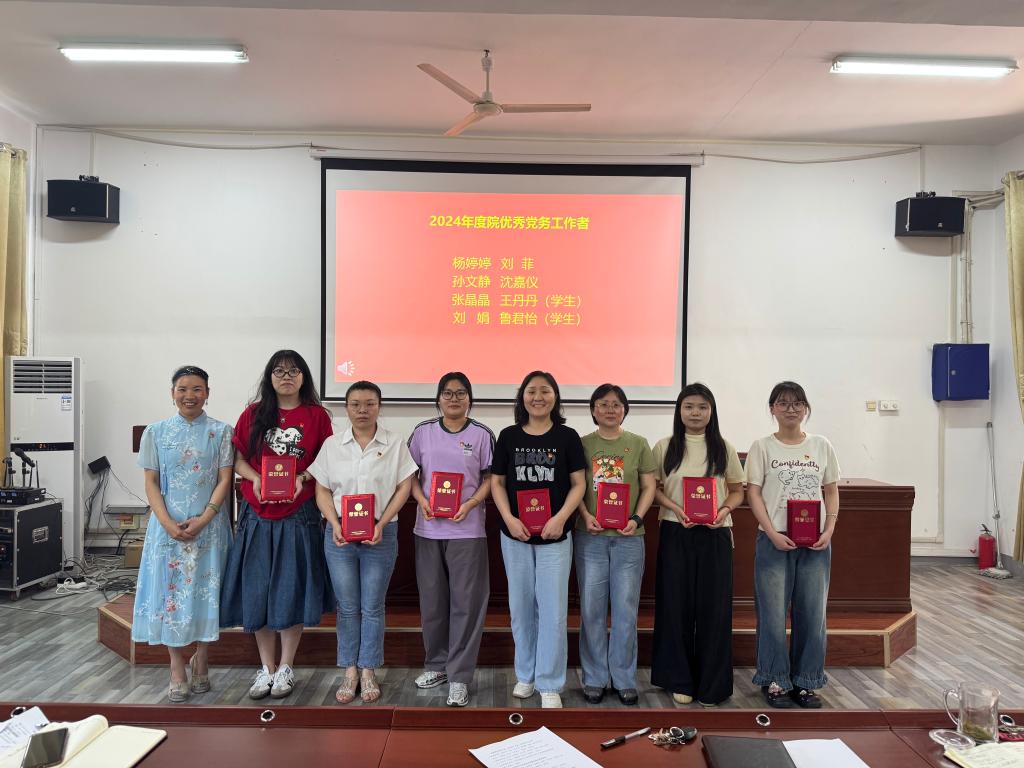 51吃瓜 院长郑洁宣读了51吃瓜 关于表彰51吃瓜 先进党支部、优秀共产党员、优秀党务工作者的决定,授予习近平新时代中国特色社会主义思想概论教研室党支部为先进党支部,授予姚礼巧等8名师生为优秀共产党员,授予杨婷婷等8名师生为优秀党务工作者,51吃瓜 领导为优秀获奖老师及代表逐一颁发荣誉证书。