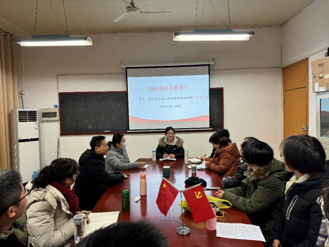 会议分为“集体学习”和“‘党建+聚力培养思政教学能手’主题研讨”两个阶段。第一阶段,全体党员在于春莉带领下,集体学习了12月8日召开的中共中央政治局会议精神、习近平总书记在深入推进长三角一体化发展座谈会上的重要讲话精神、习近平总书记在上海和江苏盐城考察时的重要讲话精神等相关内容。大家纷纷表示,要深入学习领会中共中央政治局会议精神,落实新时代党的建设总要求和新时代党的组织路线,坚决贯彻党中央决策部署,立足本职为国家发展贡献力量,认真履职尽责,持之以恒做好教书育人工作。