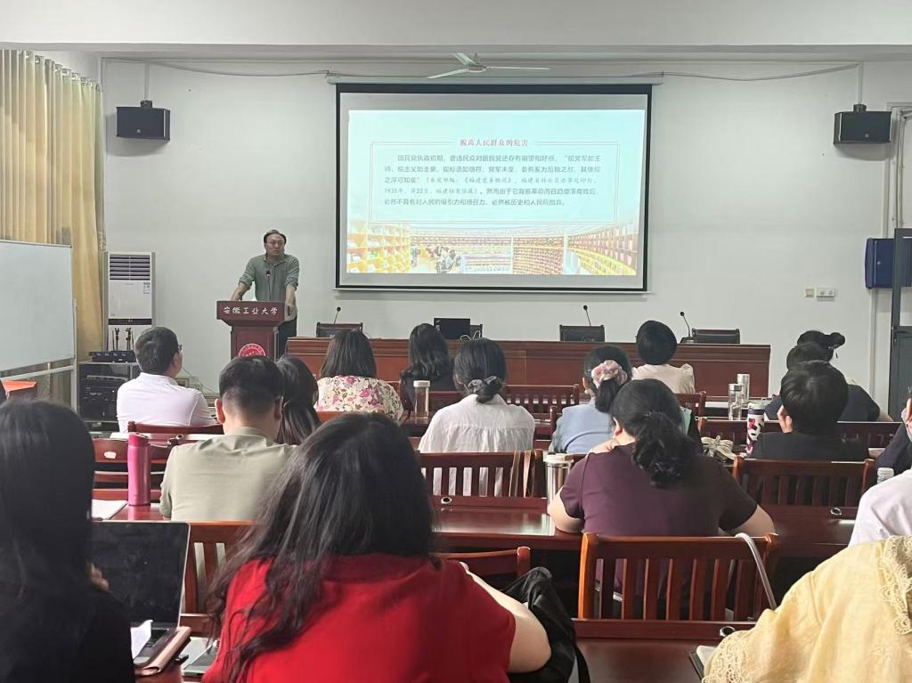 第五届教师教学创新大赛、第二届思想政治理论课教师教学技能大赛的获奖情况进行教学展示。姜玉齐老师以《脱离人民群众的危害》为题,结合党史和现实案例,深刻剖析了脱离群众的严重后果。人民群众是历史的创造者,是中国共产党的力量源泉,任何脱离群众的行为都会削弱党的执政根基。姜老师强调,新时代必须牢牢坚持群众路线,把人民利益放在首位,才能确保党和国家事业行稳致远。金雅老师以《加快建设科技强国》为题,系统阐述了建设科技强国的重大意义和实现路径。金老师以科技创新助力安徽加快高质量发展为切入点,分析了我国科技发展面临的机遇与挑战,强调必须坚持创新在我国现代化建设全局中的核心地位。她结合党的二十大精神,指出高校青年学子要勇担时代使命,夯实专业基础,培养创新思维,为突破“卡脖子”技术、实现科技自立自强贡献青春力量。