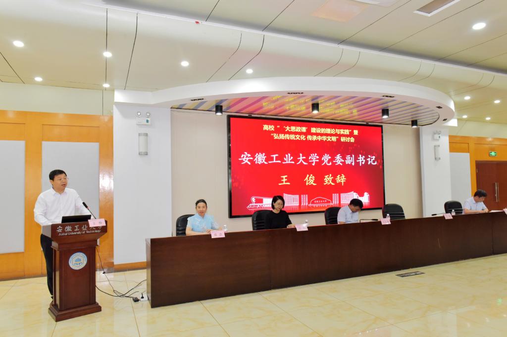 对各位领导专家的到来表示诚挚的欢迎,向大会的顺利召开表示热烈祝贺。王俊介绍了学校的历史变迁、文化积淀、改革创新,特别是深度参与安徽“三地一区”建设和长三角一体化协同创新,指出学校按照习近平总书记对学校思政课建设作出的重要指示精神,努力构建改革创新、循序渐进、彰显学校特色的“大思政课”工作体系,不断丰富“大思政课”建设的内涵,取得了明显成绩。围绕新的历史方位进一步做好“大思政课”建设,王俊提出三点要求:一要高质量筑牢“大思政课”课堂阵地,二要高水平搭建“大思政课”资源平台,三要高标准建强“大思政课”师资队伍。强调要汇众智之思,驭时代之潮,明发展之责,拓创新之境,以高质量的思政引领力赋能学校各项事业高质量发展,朝着国内一流特色高水平大学的目标加快迈进作出新的贡献。