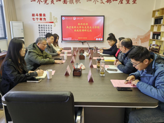 调研交流。学院院长郑洁,副院长倪松根,“新思想”教研室党支部书记戴少刚以及青年教师金雅、程权杰参加座谈会。