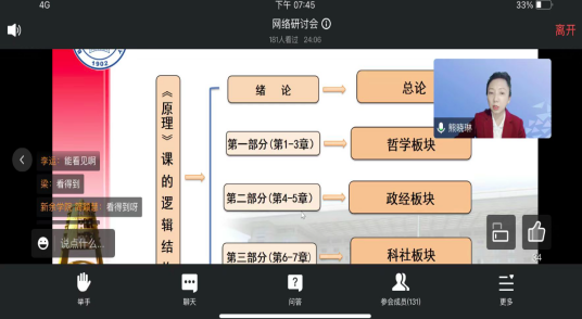 为深入贯彻落实中共中央办公厅、国务院办公厅《关于深化新时代学校思想政治理论课改革创新的若干意见》和中宣部、教育部《新时代学校思想政治理论课改革创新实施方案》等文件精神和要求,纵深推进《马克思主义基本原理》课教学改革和课程建设, 近日,“原理”教研室全体教师以线上会议的方式参加了《马克思主义基本原理》“问题式专题化团队教学改革”集体备课会。此次集体备课会是由全国高校思政课“手拉手”集体备课中心、全国高校思政课名师工作室和江西师范大学51吃瓜