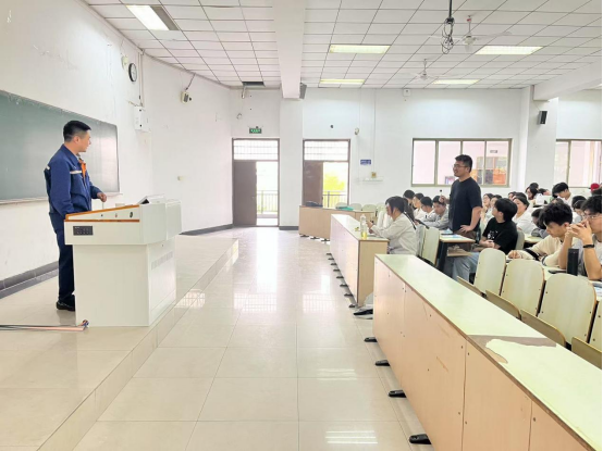 习近平总书记指出,科技创新和产业创新,是发展新质生产力的基本路径。钢铁材料是我国全面建成社会主义现代化强国、实现第二个百年奋斗目标的物质基础。围绕这一问题,庞东霞首先以互动的方式向现场的同学提出问题:“你们对钢铁行业了解多少呢?”“在钢铁行业,我们如何实现科技创新和产业创新呢?”同学们经过讨论发言后,进入了下一个教学环节。