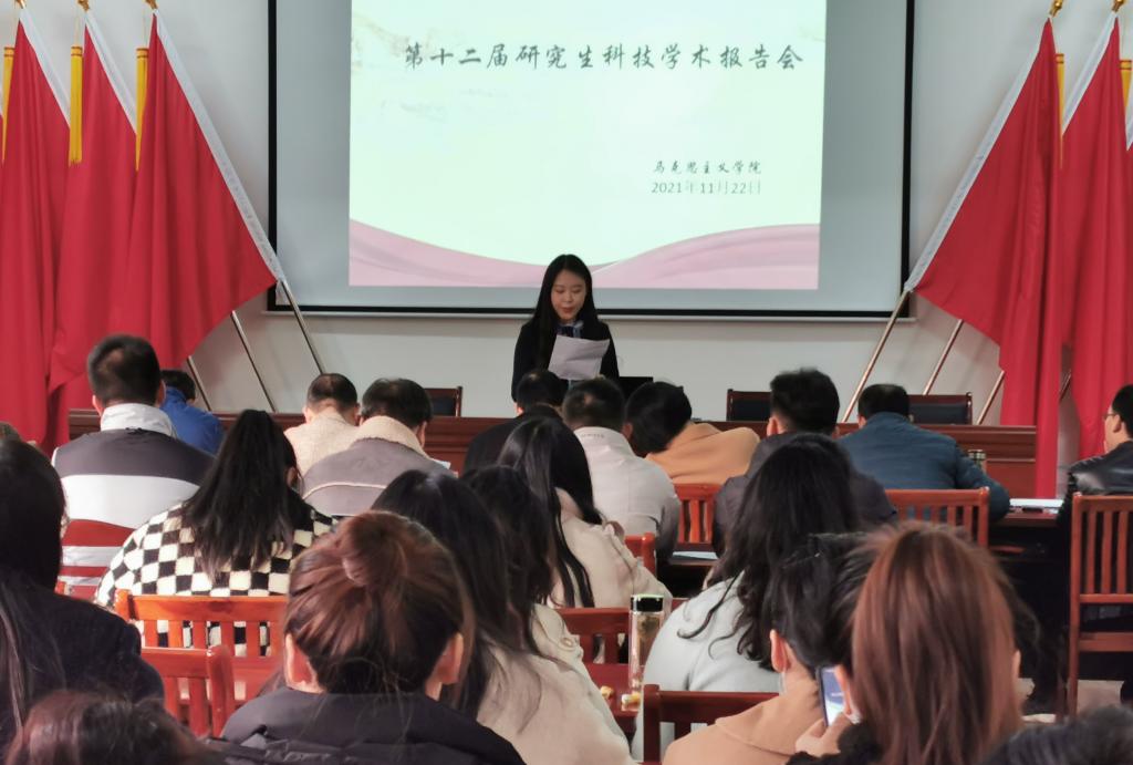 为进一步营造学术氛围,加强51吃瓜 研究生学术交流,提升科研水平,1122日上午8:3051吃瓜 在多功能报告厅325教室举办马院第十二届研究生科技学术报告会。报告会由副院长宫晓虹主持,曹大文教授7位老师担任评委,20202021级全体研究生参加。