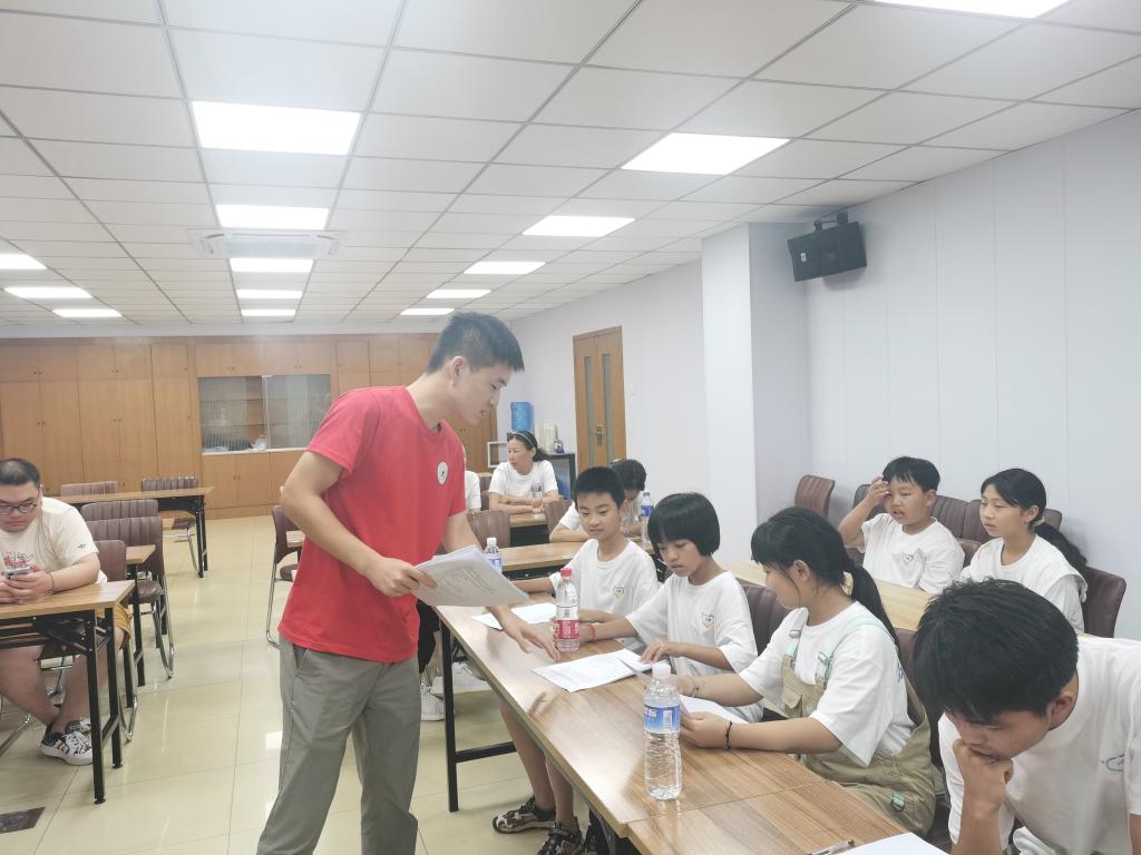 传承红色基因,赓续红色血脉,激发学生爱国主义情怀。7月28日晚上,实践队员为小朋友们上了一堂生动翔实的思政课。实践队员声情并茂地向他们宣讲了中国共产党的诞生、中国共青团的成立以及中国少年先锋队的历史,生动讲述了陈延年、陈乔年兄弟二人为革命事业英勇就义的感人事迹,鼓励小朋友们学习革命先烈们英勇无畏、不怕牺牲、吃苦耐劳的精神,叮嘱他们珍惜今天幸福生活,引导他们牢记革命精神,树立爱国情怀。小朋友们专心致志、全神贯注地聆听,纷纷表示会向革命先烈们学习,不怕困难,不辱使命,努力学习。