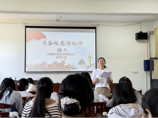 第二小组的宋时超、王莹、张翠同学从写作背景、主要内容、当代价值、阅读启示等四个维度对《湖南农民运动考察报告》进行了分享。聚焦于“调查研究”“意识形态”“群众运动”“思想政治教育”等层面对经典文本进行了不同视角的解读,并借助文献检索平台对相关研究进行可视化分析,形成完整的文献综述,使经典文本的阅读、社会热点的分析、研究领域的思考这三个方面紧密结合起来,启示当代研究生在看待问题上理应秉持“没有调查就没有发言权”的理念,立足于客观事实本身引出科学的结论;在论文写作上理应秉持着“以重大问题为导向,抓住重大问题”的理念,需要有直面问题的勇气和解决问题的硬举措。