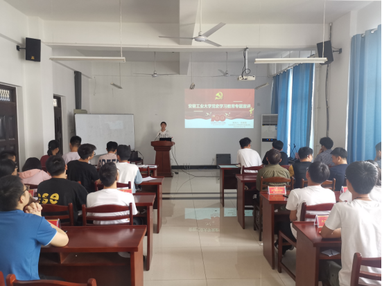 张紫薇详细介绍了习近平总书记在党史学习教育动员大会上的重要讲话精神。重点从“中国共产党建立的背景和经过”“中国共产党领导革命、夺取政权的浴血奋战史”“中国共产党执掌政权的历史”三个方面宣讲了中国共产党百年奋斗历程,运用丰富的史料、生动的事例,讲述了中国共产党从无到有、从弱到强的百年光辉历程。宣讲员倡议大家一方面要真学、笃学,重温中国共产党领导人民进行革命的伟大历史,不断凝聚正能量;另一方面要学深、学新,党的理论、党的历程在不断发展,需要经常学、反复学,掌握新知识、学出新气象。宣讲后与同学们进行了热烈的交流和互动,大家受益良多。