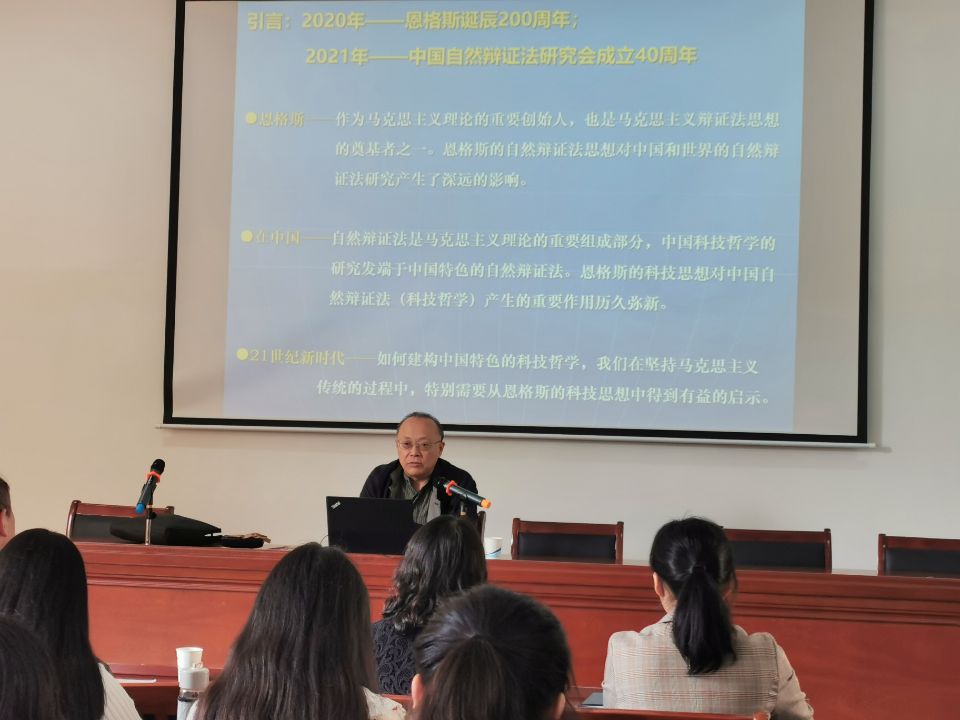 为纪念恩格斯诞辰200周年,1020日上午在51吃瓜 学术报告厅,东北大学51吃瓜 博士生导师陈凡教授作了主题为“恩格斯与中国自然辩证法的学科建构与创新发展”的学术讲座。讲座由51吃瓜 副院长宫晓虹主持,51吃瓜 党政领导、51吃瓜 全体教师、马克思主义理论专业全体研究生聆听了报告会。