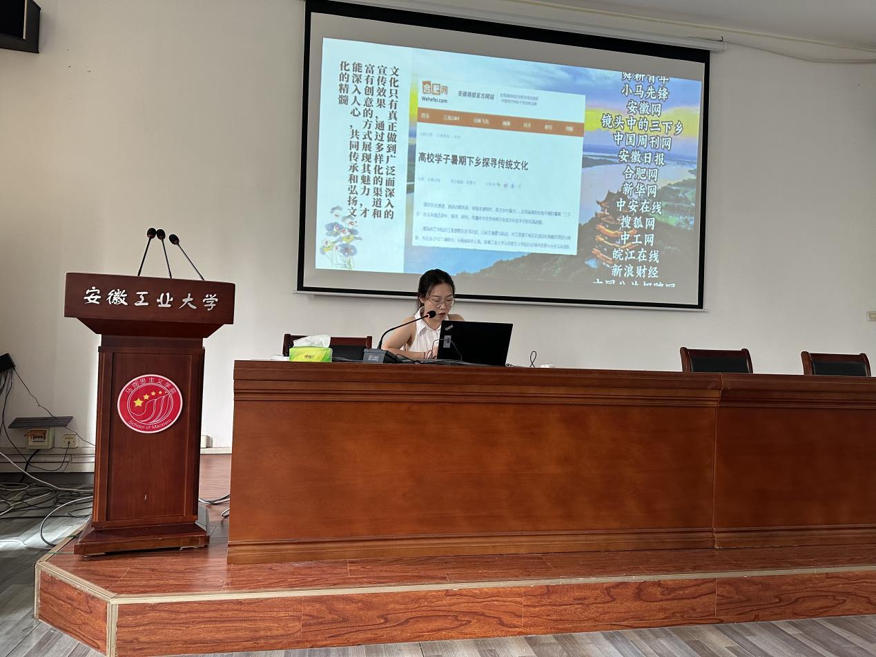 诗城寻迹青年行社会实践队通过开展人物专访与问卷调查、拍摄“半城山水半城诗”行走的思政课等形式开展实践活动。在实践过程中,受到马鞍山共青团、当涂县团委等多家媒体的关注,并受邀参加“青春诗城行,别young文化游”活动。实践成果被中青校园、安徽学联、安徽校媒、安徽日报等16个国家级媒体、11个省级媒体和9个地市级媒体报道。