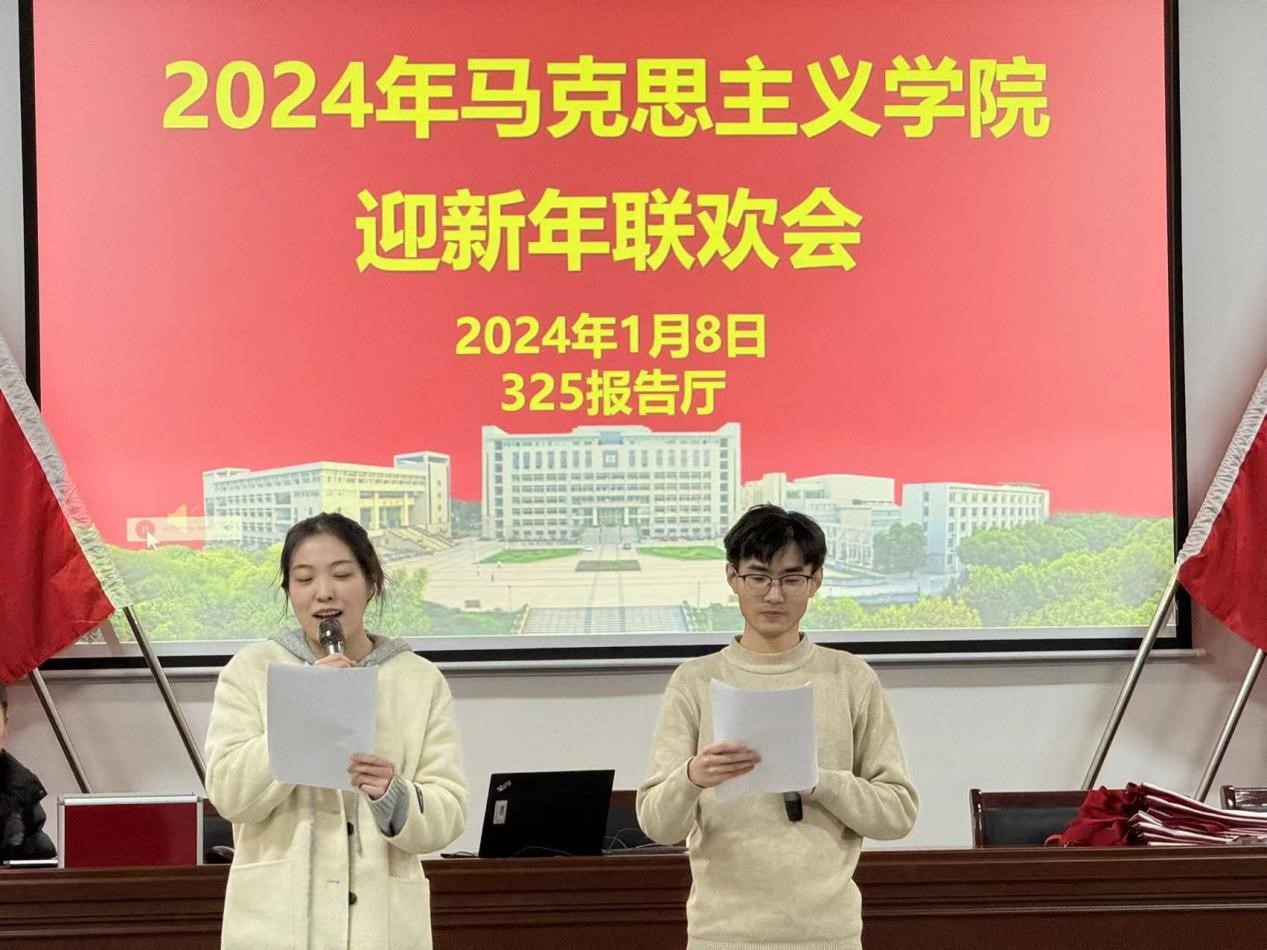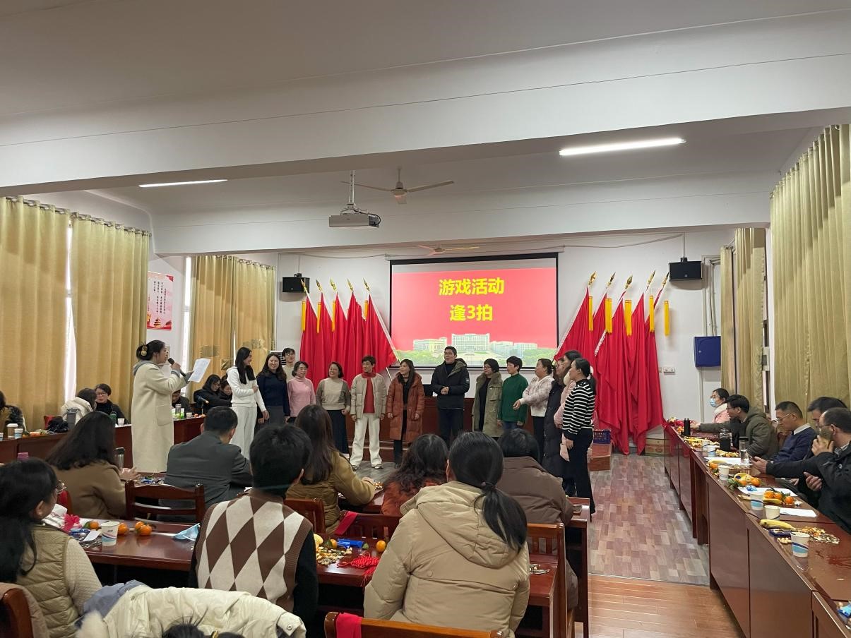 本次活动由青年教师吴少华和沈嘉仪主持。共分三个篇章,汇聚了各教研室精心编排的优秀节目。原理教研室的经典朗诵《共产党宣言》,展现了不惧艰难,为共产主义事业奋斗终生的坚定信念;新思想教研室的合唱《如愿》,表达了不负期望的人生态度;德法教研室的合唱《小城故事》,传达了温暖人心的情感;概论教研室的合唱《相亲相爱》,鼓励大家携手共建团结马院;纲要教研室的合唱《遇见你是我的缘》,重温了因缘而聚的场景;工会委员及全体教师的合唱《团结就是力量》,呼吁马院团队携手并进,朝着共同目标努力奋进。同时,联欢会穿插了“向左向右转”“逢3拍”“你比我猜”等若干游戏活动。整场联欢会主题鲜明、歌声不断、祝福连连。大家跟随音符的跳动、旋律的交响,掌声、欢呼声连绵不断。充分展现了安工大马院人朝气蓬勃、昂扬向上的精神风貌。