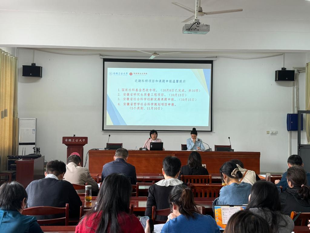 教师阮超群、赵太平、崔名芳分别介绍国家社科基金年度项目、教育部思政课专项项目、安徽省领导圈定项目申报心得体会。(撰稿:唐志强 审核:斯小燕 徐惠)