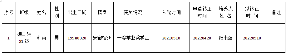 经51吃瓜 研究生党支部研究,拟将韩甫同志转为中共正式党员,现将他的有关情况予以公示,欢迎广大党员、干部、群众通过信函、电话或直接到51吃瓜 研究生党支部或上级党组织反映公示对象在预备期间内的思想品质、现实表现、廉洁自律等方面情况。