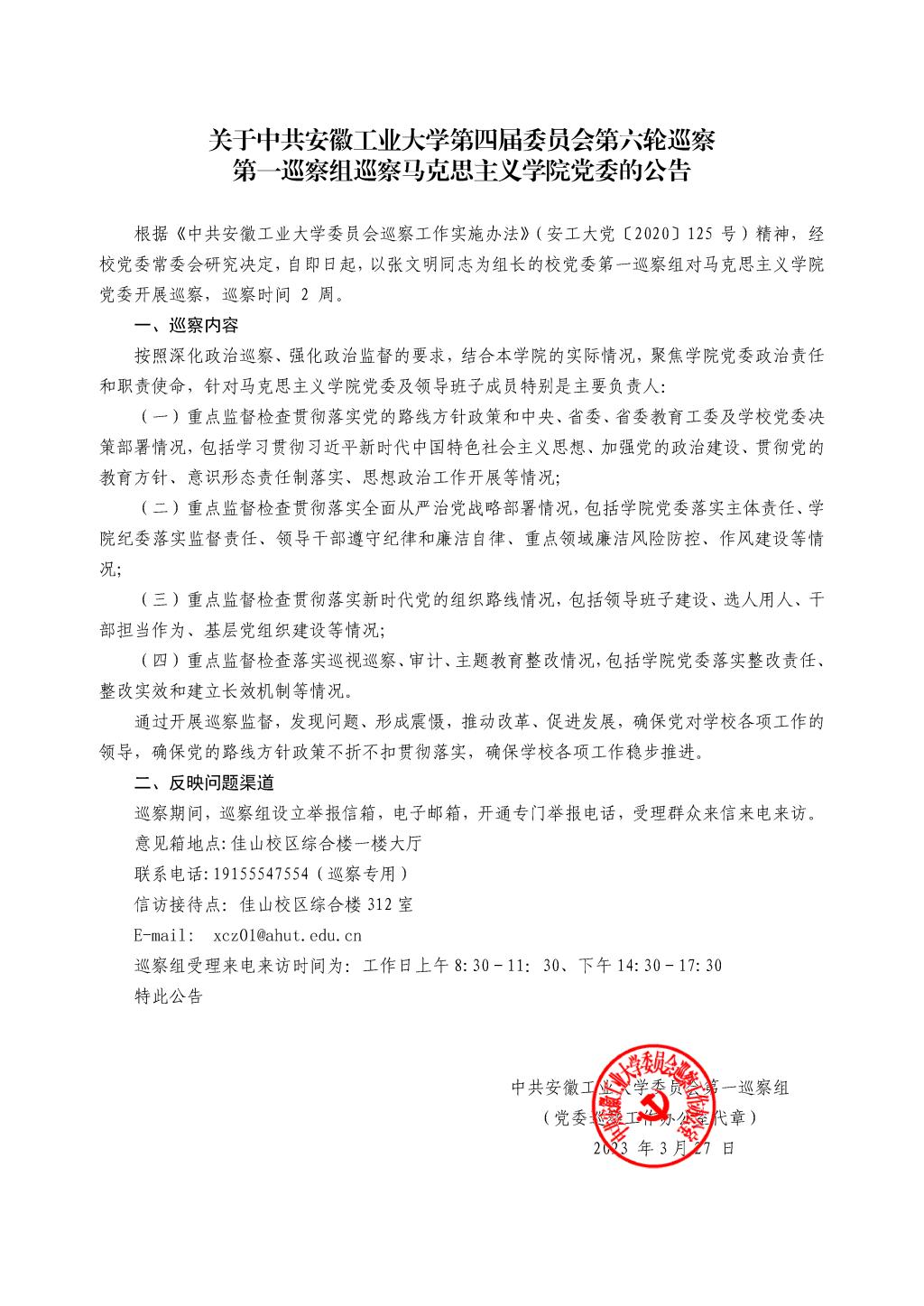 关于中共51吃瓜 第四届委员会第六轮巡察第一巡察组巡察51吃瓜 党委的公告