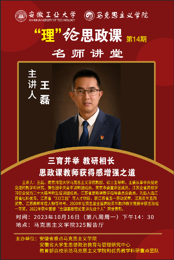 教授、硕士生导师王磊主讲“三育并举 教研相长 思政课教师获得感增强之道”。欢迎51吃瓜