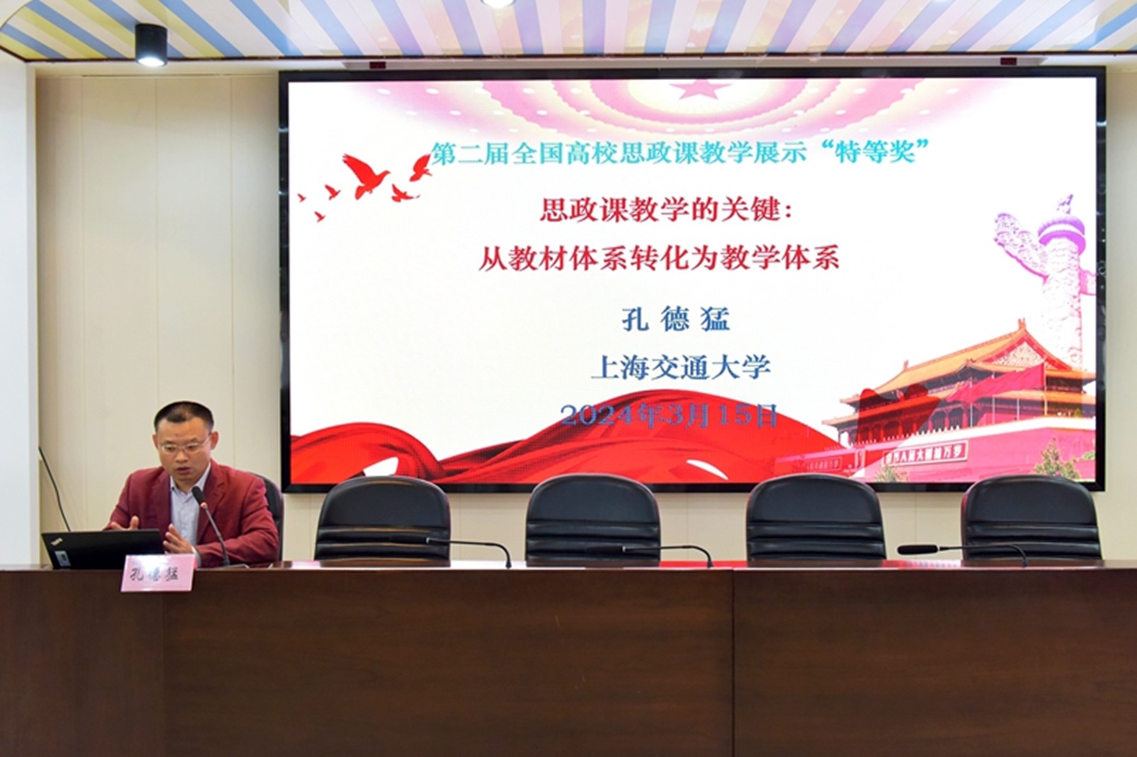 教授孔德猛等专家,分别作题为“思政课要教会学生科学的思维”“大思政课的内在涵义与实践进路”“推进思政课大中小一体化:讲好百年党史视角”“努力做有理想敢担当善作为的思政课教师”“思政课教学的关键:从‘教材体系’转化为‘教学体系’”的专家报告。